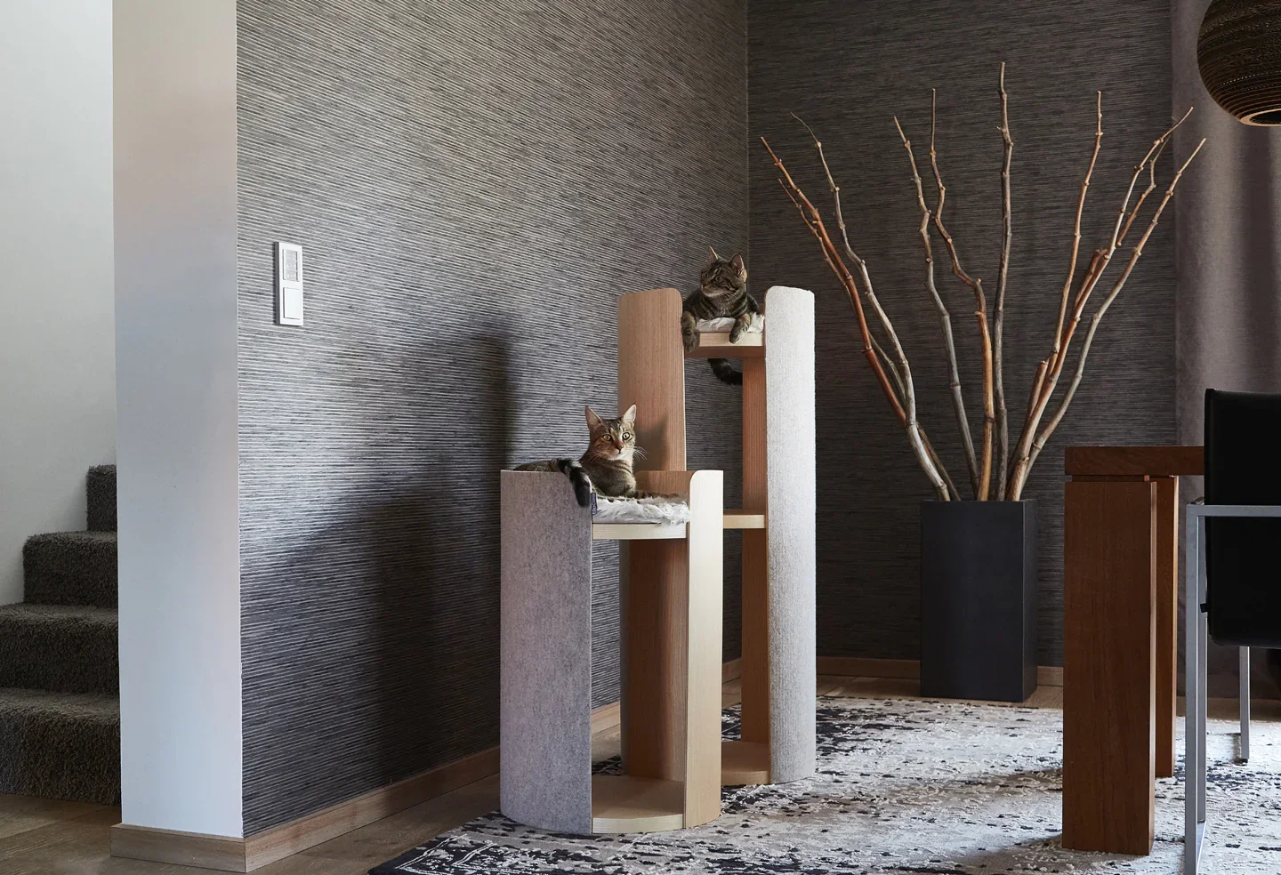 Come nell’interior design tradizionale, cresce la richiesta di prodotti su misura: mobili che integrano spazi dedicati al gatto, librerie con nicchie trasformate in cucce, cucine progettate per accogliere elegantemente le ciotole. Accanto al su misura, anche la tecnologia trova spazio: fontanelle filtranti, dispenser automatici e sistemi smart che semplificano la gestione quotidiana senza rinunciare allo stile.